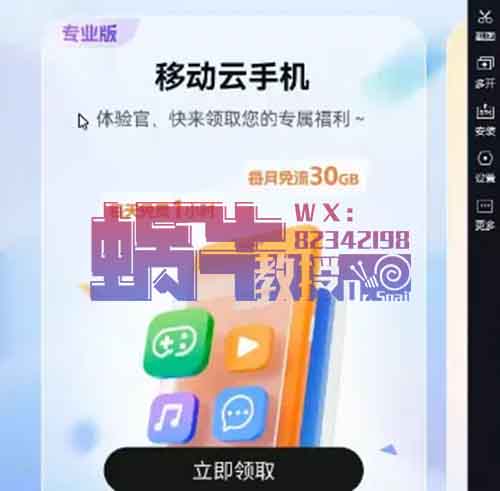 移动云手机每天每个号码登陆后可以免费一小时,足够用了,登陆后点“立即领取”,点“进入云机”。