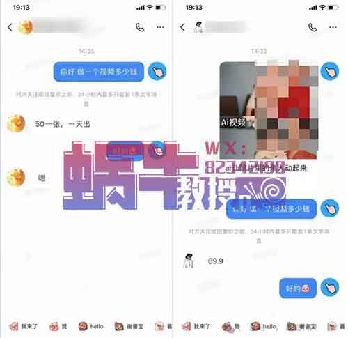 下面这是我找到的一个同行,主要就是给别人提供代制作服务,收费室50-70元左右一个AI老照片动起来的视频。