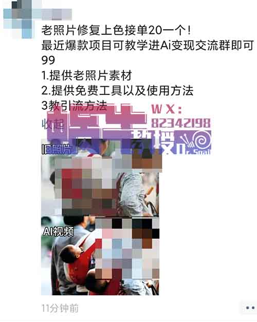 目前很多大佬,或者是圈内小博主,都在收徒培训这个AI老照片项目,因为很多人都想赚钱,也刚好这个项目目前是属于热点,所以想学习的人非常多。