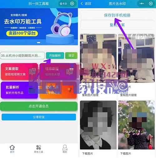找到素材之后,直接复制作品链接,然后在小程序搜索去水印随便打开一个,下载无水印照片保存起来备用。
