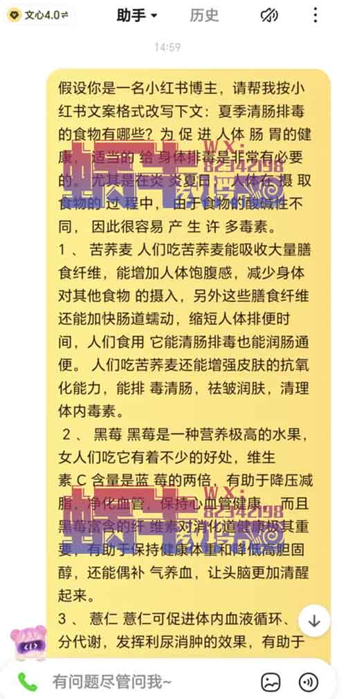 比如,我一般会这样发送:“假设你是一名小红书博主,请帮我按小红书文案格式改写下文”,不到一分钟,它就会自动生成文案。