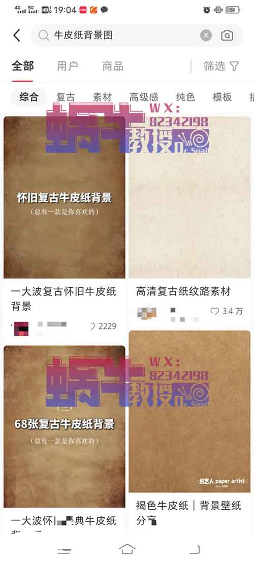 然后制作主图和次图,像这种很像古书的背景图,只需要在小红书搜索“牛皮纸背景图”就会出现很多,随便截取一张自己喜欢的就好。
