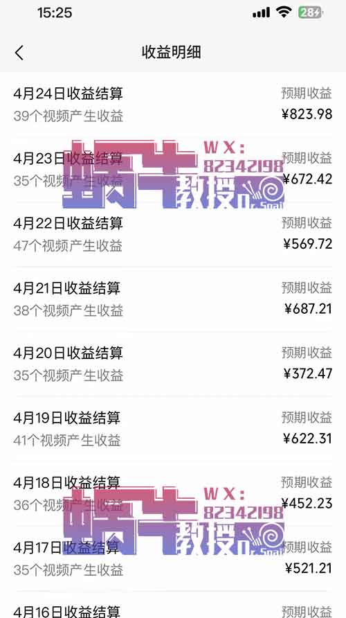 1.分成收益,这是主要的收益来源,按照视频播放了计算收益,日入800+,如果你的时间充裕,可以多做几个号,矩阵收益更高。