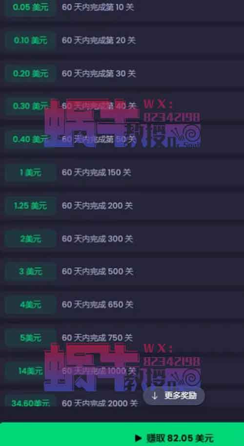 刚开始玩2分钟有$0.05,之后每天持续登录,收益会越来越高。这款小游戏最高可以赚到$82,算下来大概是有600米左右,是不是很不错呢!