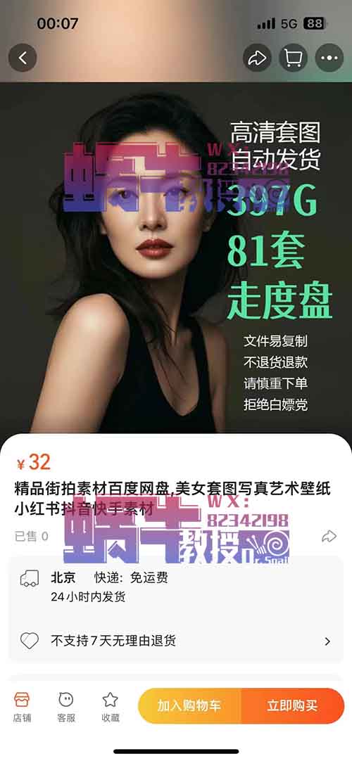 这种在网上卖虚拟资料的好处就不用多说了吧,0成本、反复卖,没有库存压力,况且最重要的一点是完全没有售后压力,客户买完只会慢慢的去欣赏每张图片,剩下的跟你没有任何关系了。