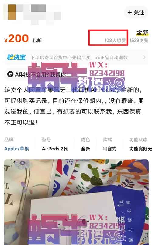这个项目主要是在闲鱼上操作,卖的产品是苹果二手耳机,需求很大。