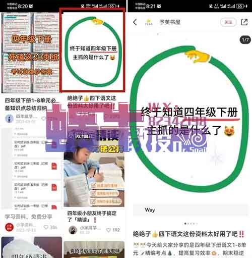 笔记主要内容就是做小学资料方面的图文,做账号先找爆款的对标账号,拆解一下别人的风格,模仿着做即可,开始不用做原创。