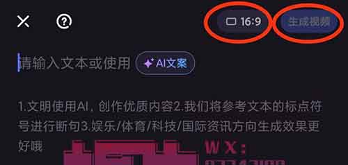 打开度加,选择“AI成片”,粘贴文案,选择比例 ,点右上角“生成视频”。