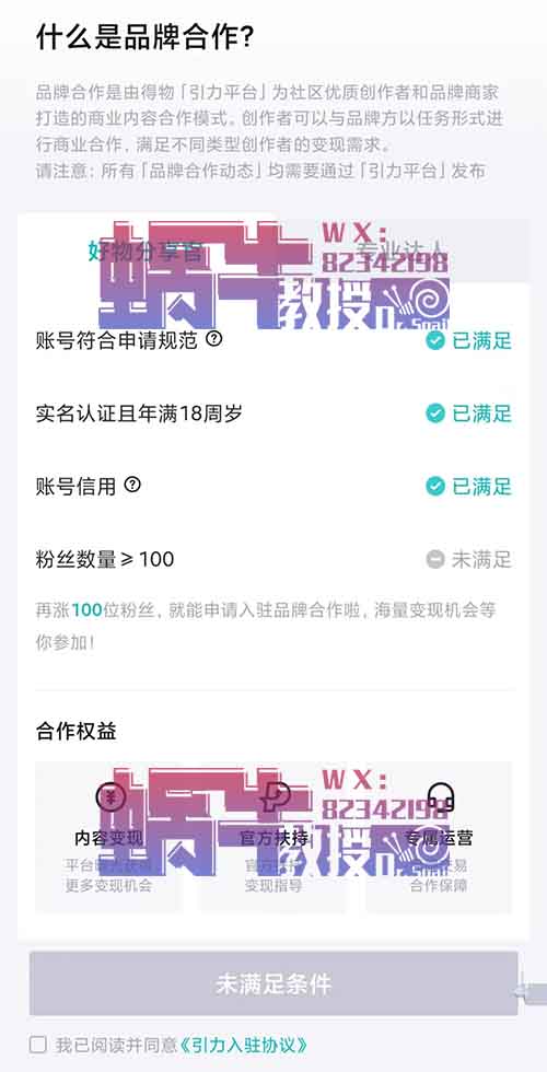 这个项目的优势,就是门槛低,属于平台红利期,对于作品审核不严,0粉丝即可关联好物, 100 粉即可开通品牌合作,类似于小红薯接商单。