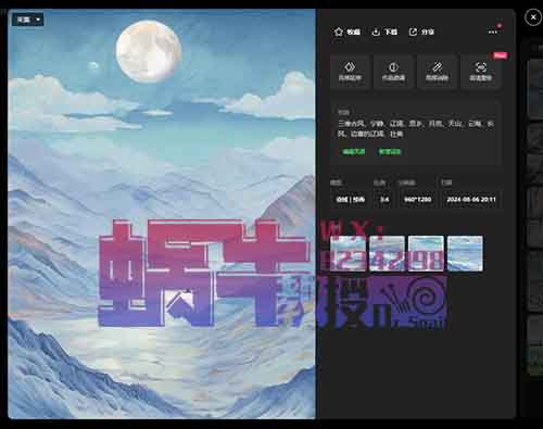 2、AI绘图:选用高效便捷的AI绘图软件,将第一步得到的提示词输入系统,生成一系列富有诗意的图像。