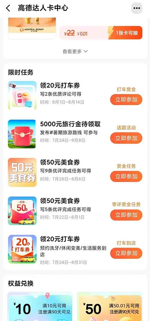 2. 限时任务:在高德地图积分中心,你还可以参与限时任务,赚取额外积分或优惠券,这些优惠券可以在餐厅等场所使用,实际收益更高。