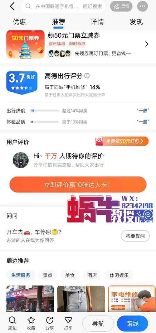1.选择店铺:打开高德地图,随机选择一家店铺,下滑到评论区。