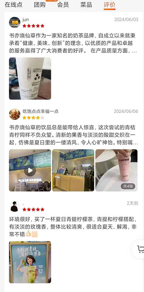 借用素材:打开大众点评,找到对应店铺的评论,放大图片后截图,复制一段较长的评论文案。