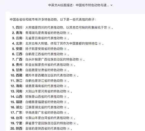 这些视频核心的点是把每一个城市的特色动物结合一起,我们首先使用Kimi AI,让AI帮我们提炼出每个城市的特色动物是什么。然后再把每个城市的特色场景提炼出来,组合再在一起。比如成都大熊猫、广州华南虎。