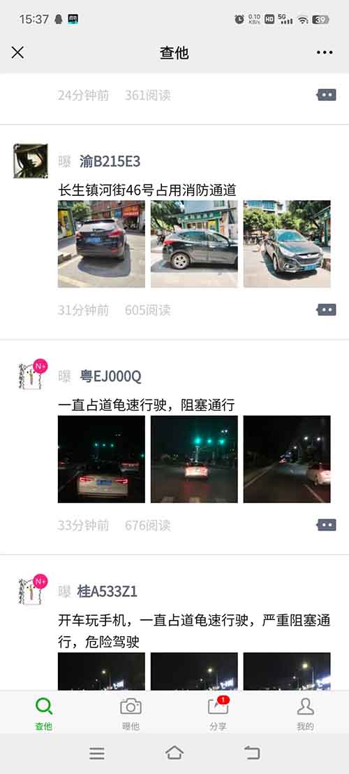 关注以后可以看看里面审核通过的案例,大都是一些违停的照片!