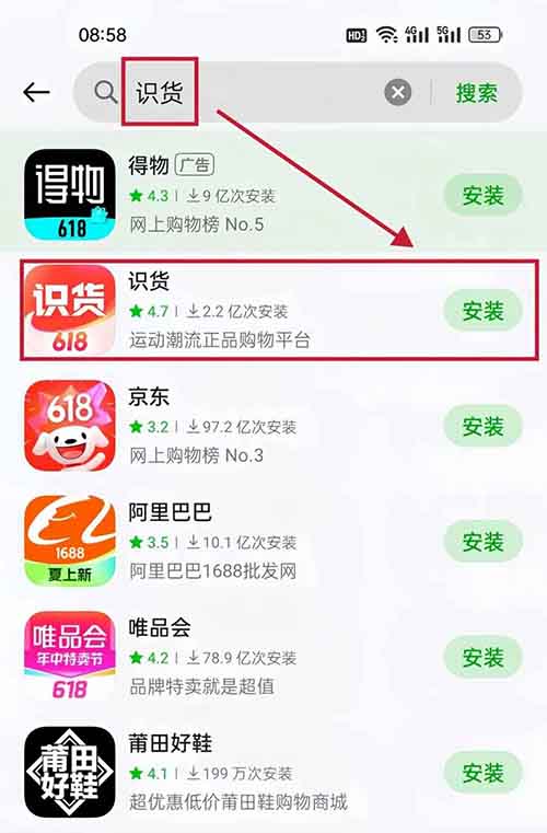 首先做这个项目只需要下载两个ap,识货和得物,应用商店都能搜到。