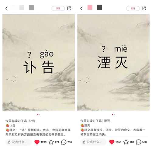如果你经常刷小红书,应该刷到过下面这种笔记,生僻字普及,如下图。