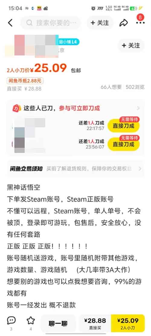 目前这款游戏的价格是258,对于有的人来说只想体验一下,就觉得太贵,这时候黑神话悟空的账号租赁就产生了巨大的需求。