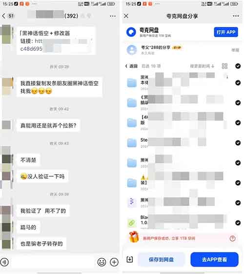 就如上面这样,直接在群里分享进行拉新,下载后能不能玩是一回事,只要你点开链接,里面就有很多版本以及修改器,看上去非常专业和多样化,所以吸引了不少人去转存和注册。