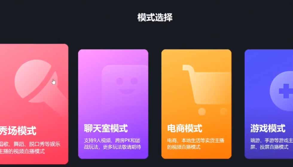 打开快手直播伴侣,选择秀场模式并添加刚设置好的摄像头;