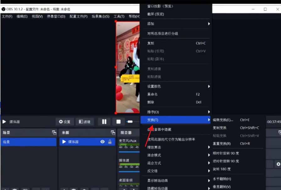 在OBS中设置直播场景,添加并调整好视频源。视频要足够长且吸引人,这种资源也很好找,设为循环播放模式;