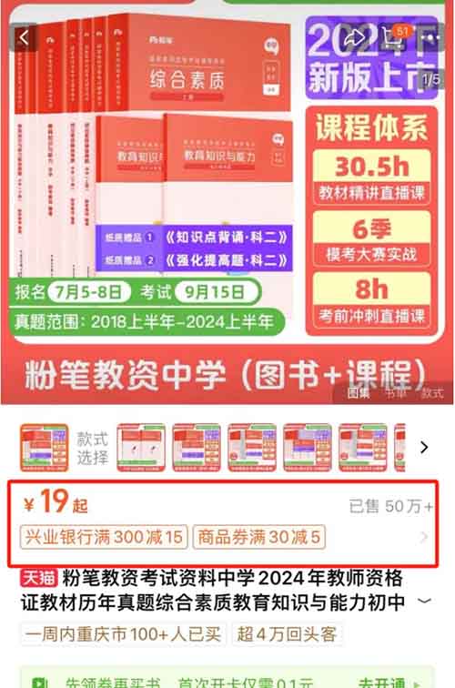 有伙伴做教资项目,直接用别人有版权的网课,这种做的风险很大,不能批量操作,容易出问题,其实这个领域做正版也很赚钱的,有个机构卖2024年相关的资料,卖了五十万份了。