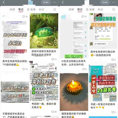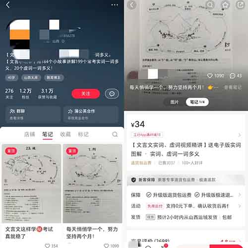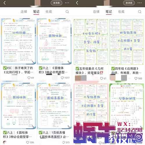 先给大家看看第一个案例,这个是一个数学老师的账号,小红书粉丝是3.4w,从笔记的呈现方式来看,就只是展示了资料,整个账号的数据比较平稳,没有很多爆款。