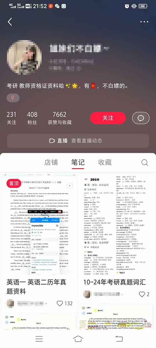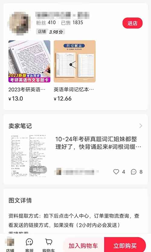 小红书卖考研资料的这个账号,就发布了17条笔记,涨粉9000+,就单纯卖考研英语词汇,也出了7000+,也搞了2.8w+