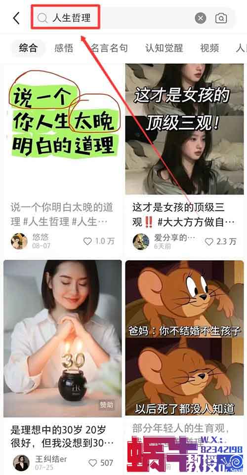 直接打开某红书,然后主页搜索关键词“人生哲理”,会找到很多优质的文案。