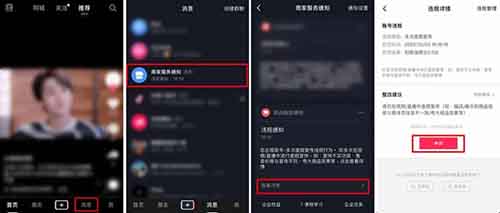 查看路径:抖音APP首页,点击【消息】按钮——> 找到并点击【商家服务通知】——>找到你的违规判罚通知——>点击通知下方的【查看详情】