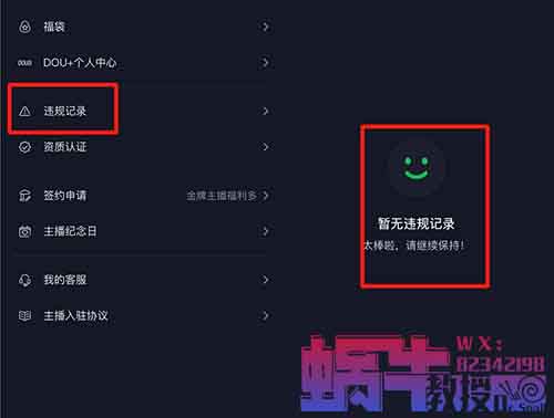 另外,在抖音APP上,在直播过程中,违规处罚时会推送违规弹窗提醒,可根据弹窗提示了解违规详情。直播中出现的违规情况会通过站内信形式推送至消息中心查看。1.2 抖音APP主播中心