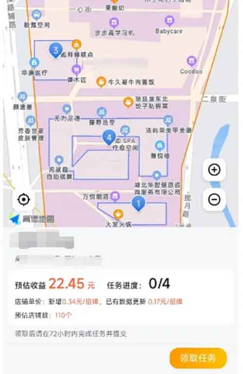 简单来说,这类平台玩法都差不多,照着任务指示做,钱就到手了。不同于拉人头的活儿,高德、百度这些大佬,是请咱们帮忙更新地图信息,比如店铺、道路、公共设施等等。因为地图天天在变,所以任务源源不断,根本不愁没活干。