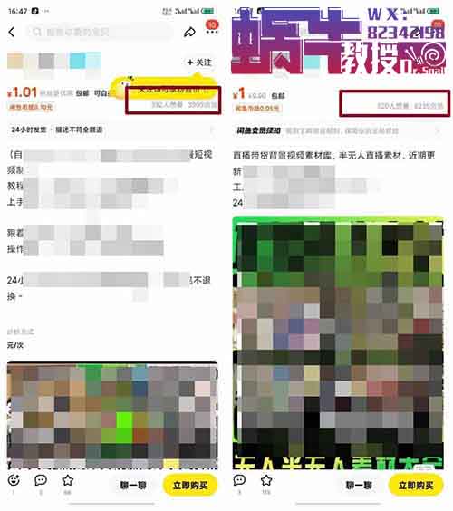 同样的,我们可以找这些直播素材去上架到闲鱼,多少也能赚点钱。