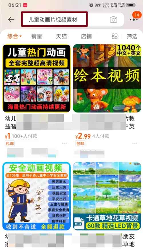 这些动画片素材也非常好获取,最快的方式就是通过淘宝直接购买。