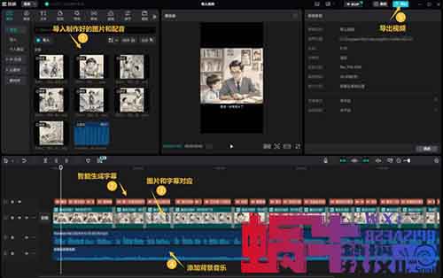 把上面已经制作完成的配音素材和图片素材全部导入到剪映,通过拼接的方式整合成一条完整的视频,并导出到本地。