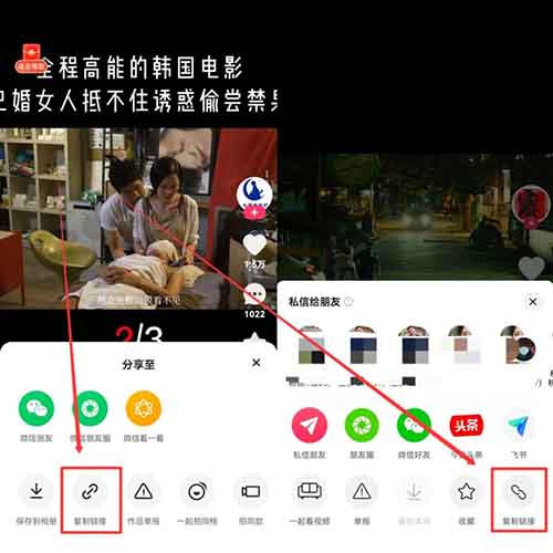 打开抖音或快手,找到你想要搬运的视频,点击复制链接,如下图。