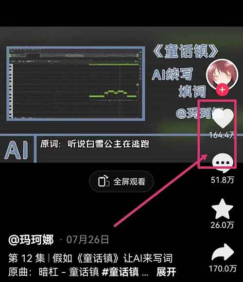 最近,我在平台上刷到一些用AI重新写词翻唱热门歌曲的视频。流量非常的猛,基本上条条都是大几万甚至上百万的点赞。估计播放是也是小千万级别了。关键是这种号不用露脸,全程都是用AI重新填词来进行翻唱的。曲调不变,歌词一换,完全就是另一个感觉了。