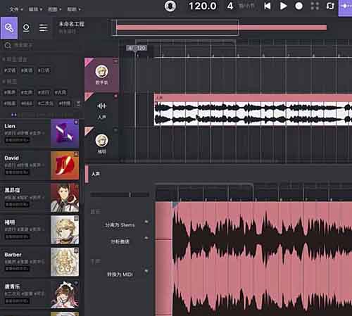4.将第2步导出的人声和背景分别导入到歌曲制作软件。选择左边的一个AI角色,进行转换声音。