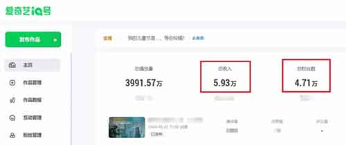 而爱奇艺视频这块,也是属于自媒体,只要通过在爱奇艺视频板块里面发布视频,有播放就能获得相应的收益。