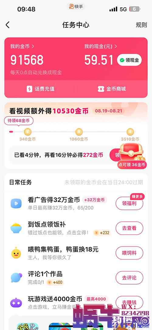 下面我会详细介绍他是如何通过快手刷视频赚钱的这个副业。