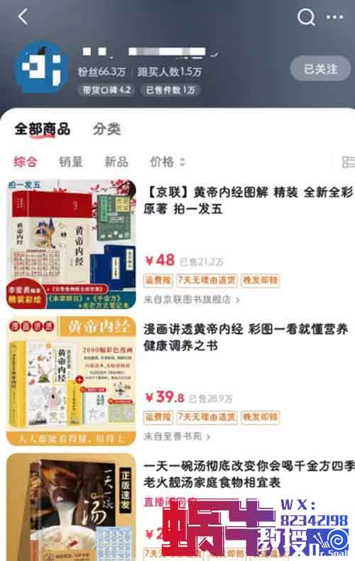 以一个带货中医、食疗书籍的账号为例,下面这个账号通过影视剧混剪的形式,成功带货超过1万件,佣金高达50%。