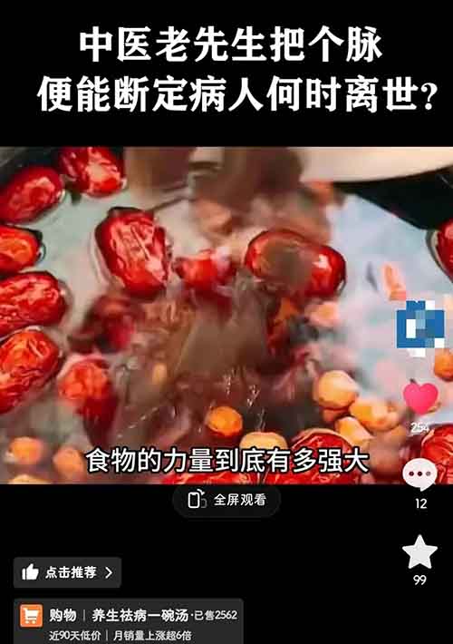 故事结束后,可以通过观点过渡到商品介绍,比如用“药补不如食补”这样的观点,引出带货的中医、食疗书籍。在这里,商品介绍的视频素材也可以通过混剪其他带货达人的视频,