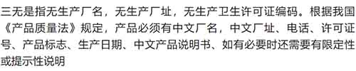 但是上面的三无定义说了,没有其中一样都算是三无产品,但是这个类目蜡瓶糖。他缺少了4~5样