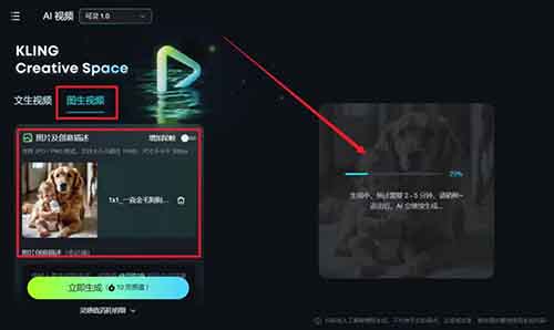 进入AI视频界面后,在左边菜单栏点击图生视频,然后上传你保存好的图片,点击生成。