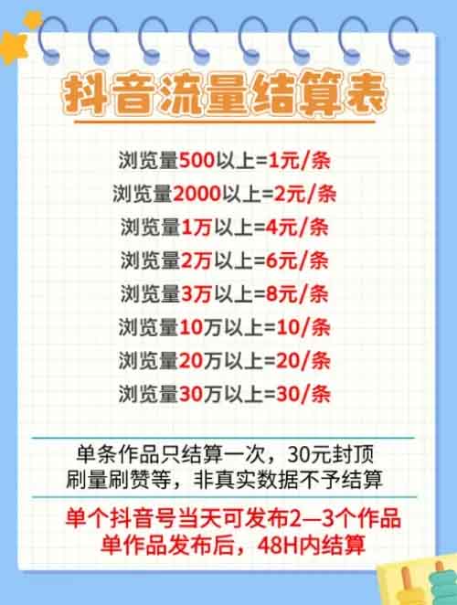 他领取作品发布以后,这种一键生成的作品,播放量百分之90都是500-1000之间,你同样给他结算,几块钱而已,然后你给他说,新卡新号才会有流量,给他发卡过去,然后让他首冲50激活,你再给他报销,这样你的号卡佣金就到手了。