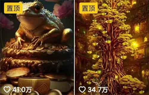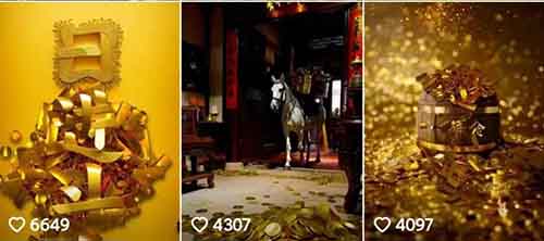 金鸡报喜,财神,金山,金蟾蜍,貔貅,摇钱树 等这类的视频,可谓是很火爆。