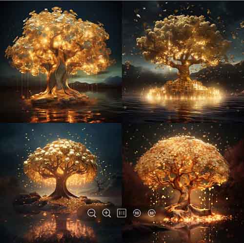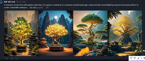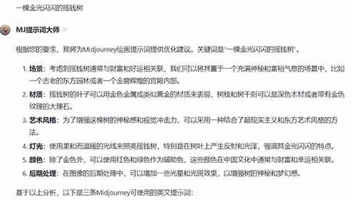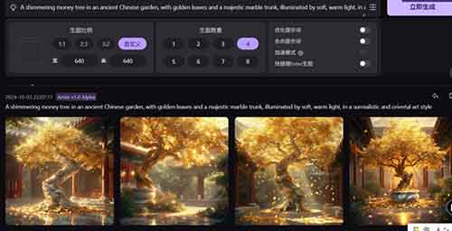 然后在对话框里面输入你想要生成的内容,比如,一棵金光闪闪的摇钱树