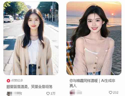 能看出来是AI生成的吗,而且基本都是生活照,现在还相信网络上的“美女”吗,你都不知道你看到的是不是真人。