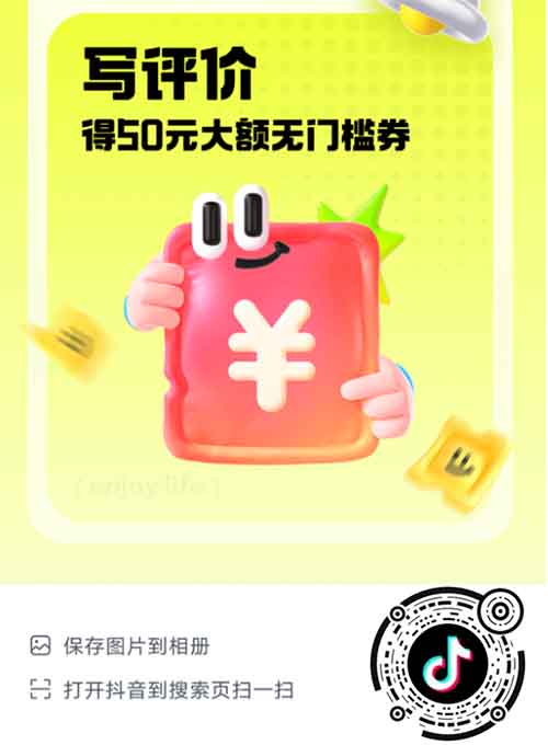 其实就是抖音为了推广本地生活团购版块推出的一个活动,只要在抖音团购店铺发布评价就可以获得平台奖励的无门槛红包