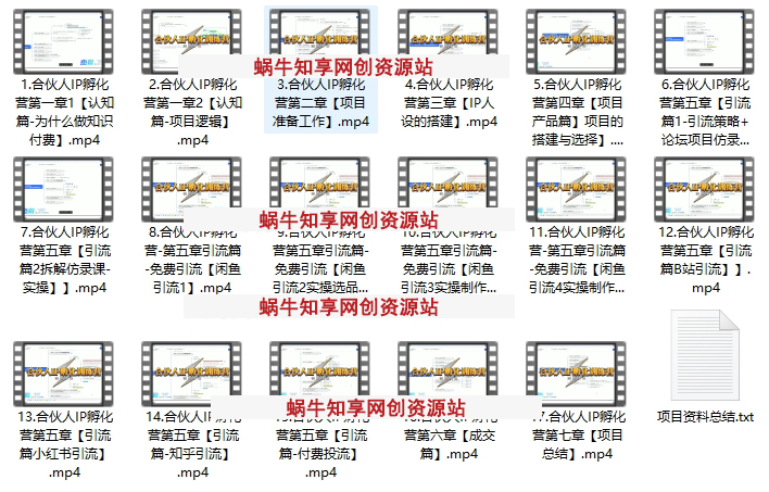 咱们的【卖项目合伙人IP孵化训练营】课程主要分为五部分:
